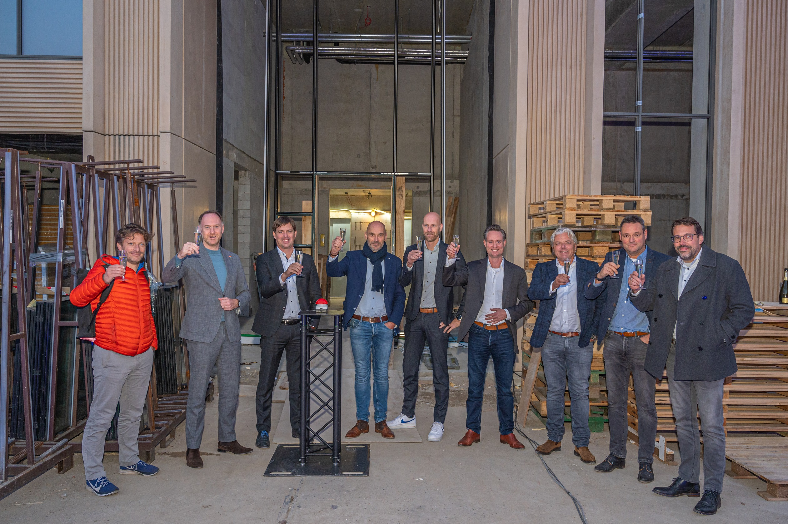 V.l.n.r: Machiel van Zutphen (Projectleider Gemeente Tilburg), Bas van der Pol (wethouder Tilburg), Robert van Boldrik (Algemeen directeur VB Groep), Bas Dikker (Hoofd Ontwikkeling CRA Vastgoed), Paul van den Heuvel (directeur Novaform Eindhoven), Guus Theuws (sr. Projectontwikkelaar Novaform), Jeroen de Bekker (Groepsdirecteur bouwen VB Groep), Kees-Jan Oosterhout (Hoofduitvoerder Huybregts Relou) en Cas Janssen (Projectleider Huybregts Relou).
